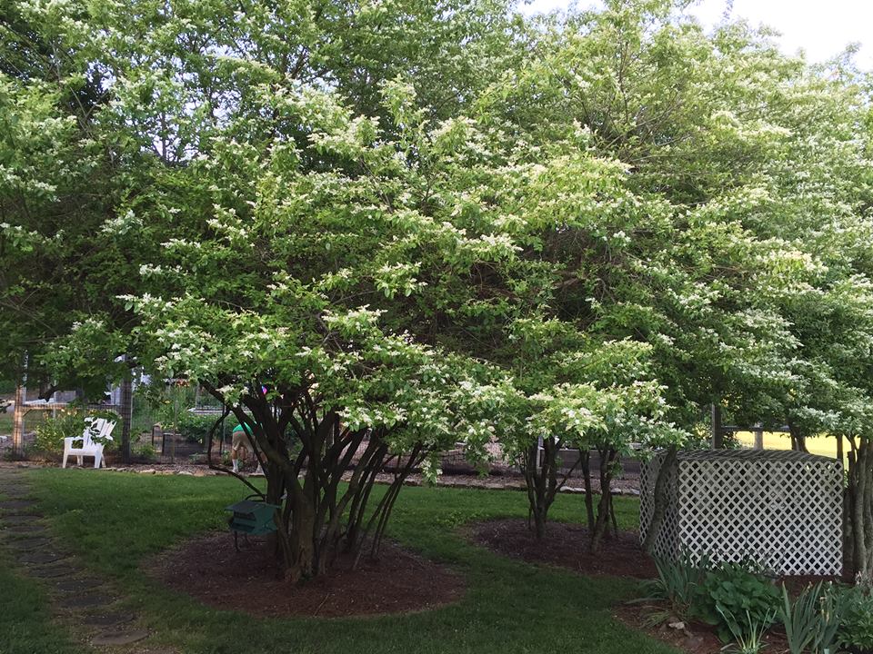 Viburnum – Snowball; blooms in the early spring just after the dogwoods and along with flowers such as iris and peonies.