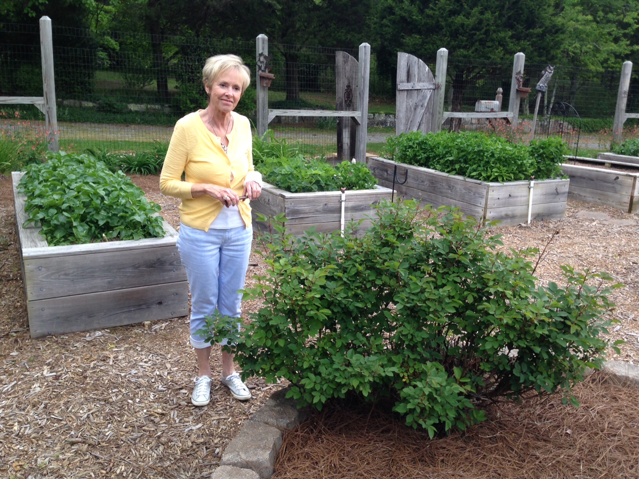 Charlotte spends the majority of her time in our garden with the flowers.  It is really cold on Lookout Mountain in the wintertime.  The blooms in the winter include camellias, several forms of daffodils, flowering kale and some annual pansies.  In the spring the flower garden comes to life with the peonies, multiple kinds of iris, knock out roses, ice plants, foxgloves, clematis, amaryllis, day lilies, calla lilies, ginger lilies, button plants, columbine, oak leaf hydrangea, butterfly bushes, red-hot poker, verbena, hosta, yarrow, trillium, campion rose (lychnis coronaria), gerbera daisies, carpet roses, pineapple sage, thrift, honeysuckle, snowball bush and many other perennials. These are complemented with summer annuals such as sun flowers, marigolds, geraniums (which we winter over), lantana, vinca, hibiscus, portulaca, sultana, zinnia, mandevilla and many others.