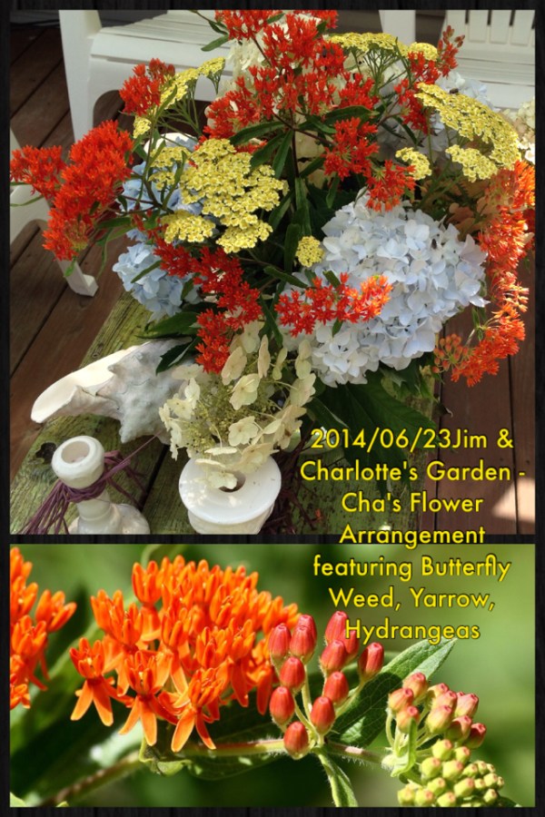 2014-06-23 Jim & Charlotte’s Garden – Cha’s Flower Arrangement featuring Butterfly Weed, Yarrow, Hydrangeas