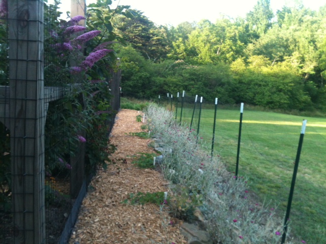 This is the backside of the raised bed garden where we grow herbs and a few melons. The Rose Campion Lechtin is seen on the right. When it is in full bloom, it is a glorius sight.