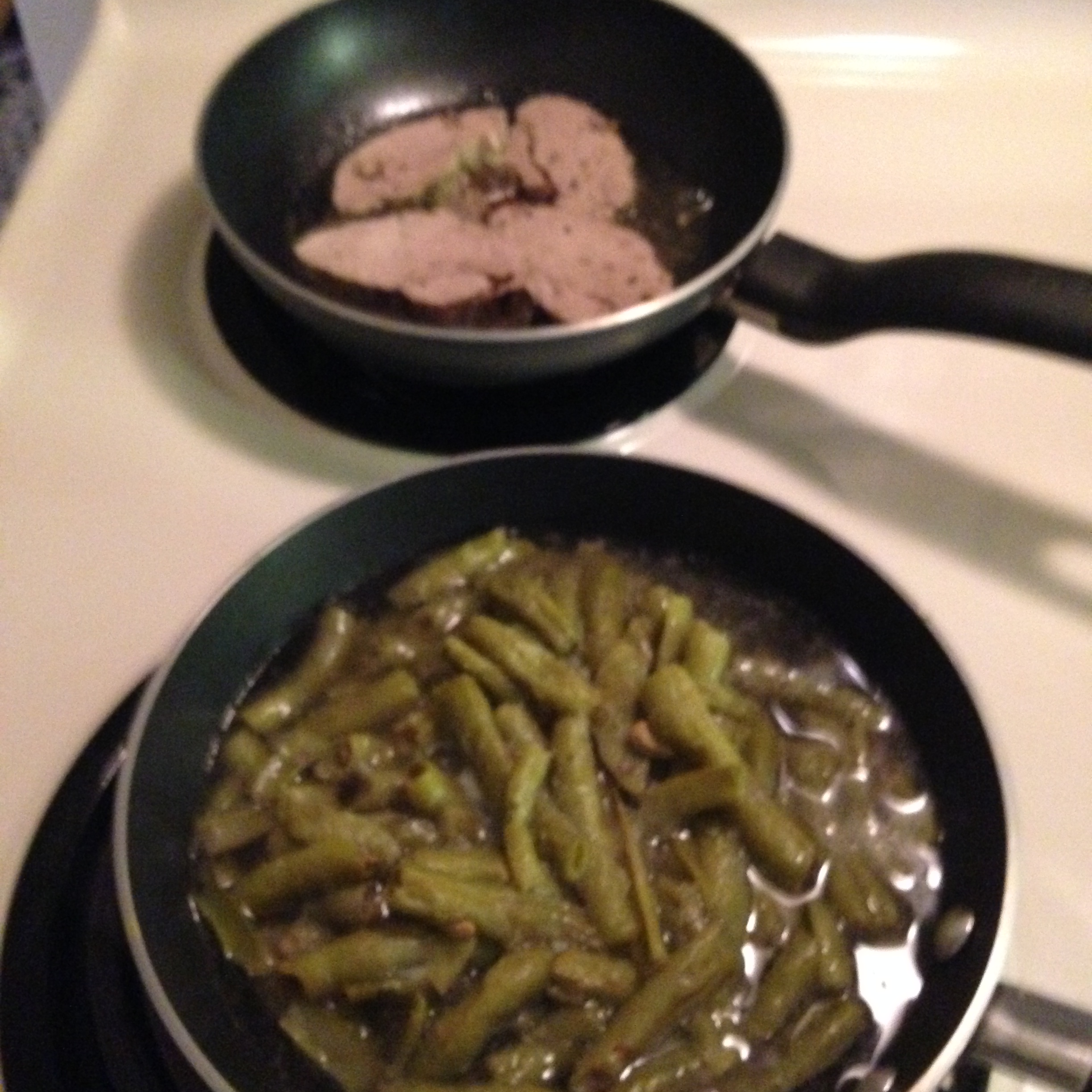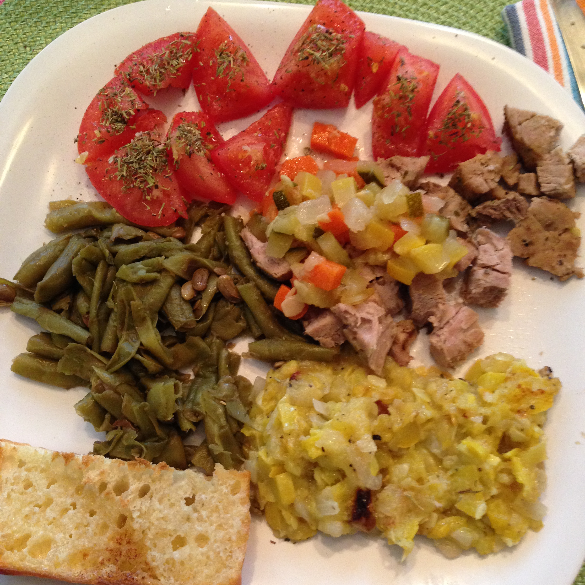 We are having Contender bush beans from the freezer (2012) … along with a little Pear Relish that