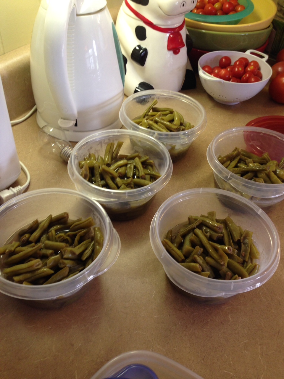 Charlotte cooks the beans, places them ready to eat into containers and puts them in the freezer.  Charlotte says that these two beans, which we combine before cooking, are her favorite vegetable.  We eat them all year long.