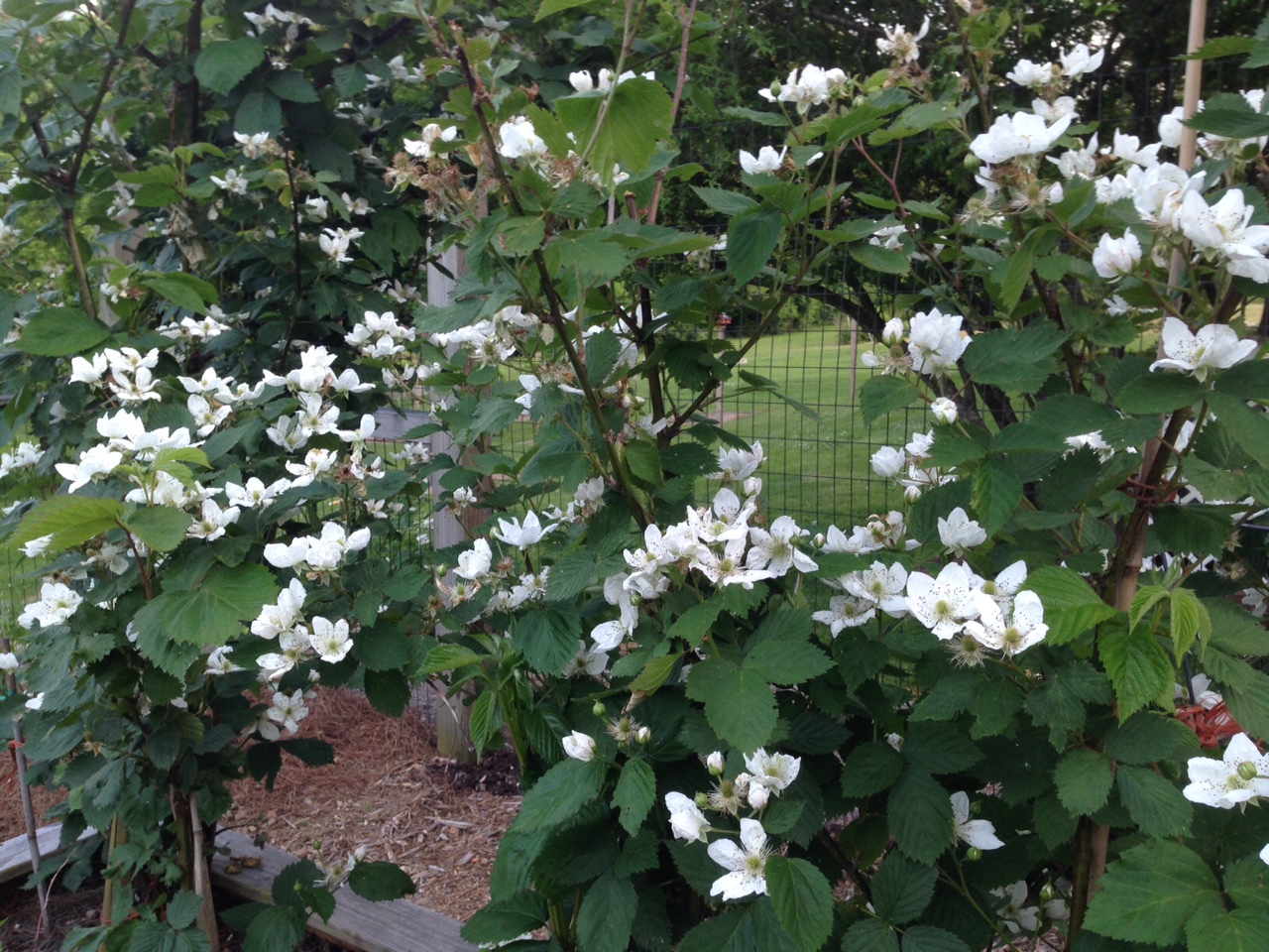 When the thornless Apache blackberries bloom they are beautiful … and so are the berries when they are ready to harvest in mid to late July.