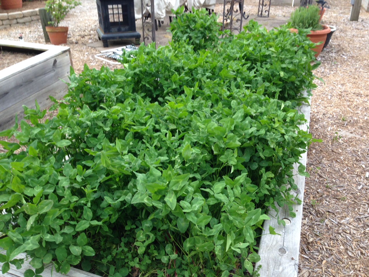 Last fall we planted red clover in several of the beds. Here is a picture of the mature clover prior to blooming. The clover was turned under to make a natural green manure to enrich the soil in the beds.