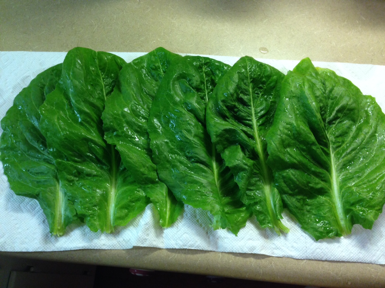 This is six leaves of a variety of Corcarde Lettuce. It is a perennial in our garden coming back each spring. It is really a hardy variety living into the hot summer. The leaves are best when picked small. These are about 6-8 inches in length.