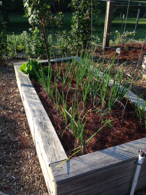The onions will be harvested in June and the bed will then give way to another veggie. The Corcarde Lettuce is on the back left.