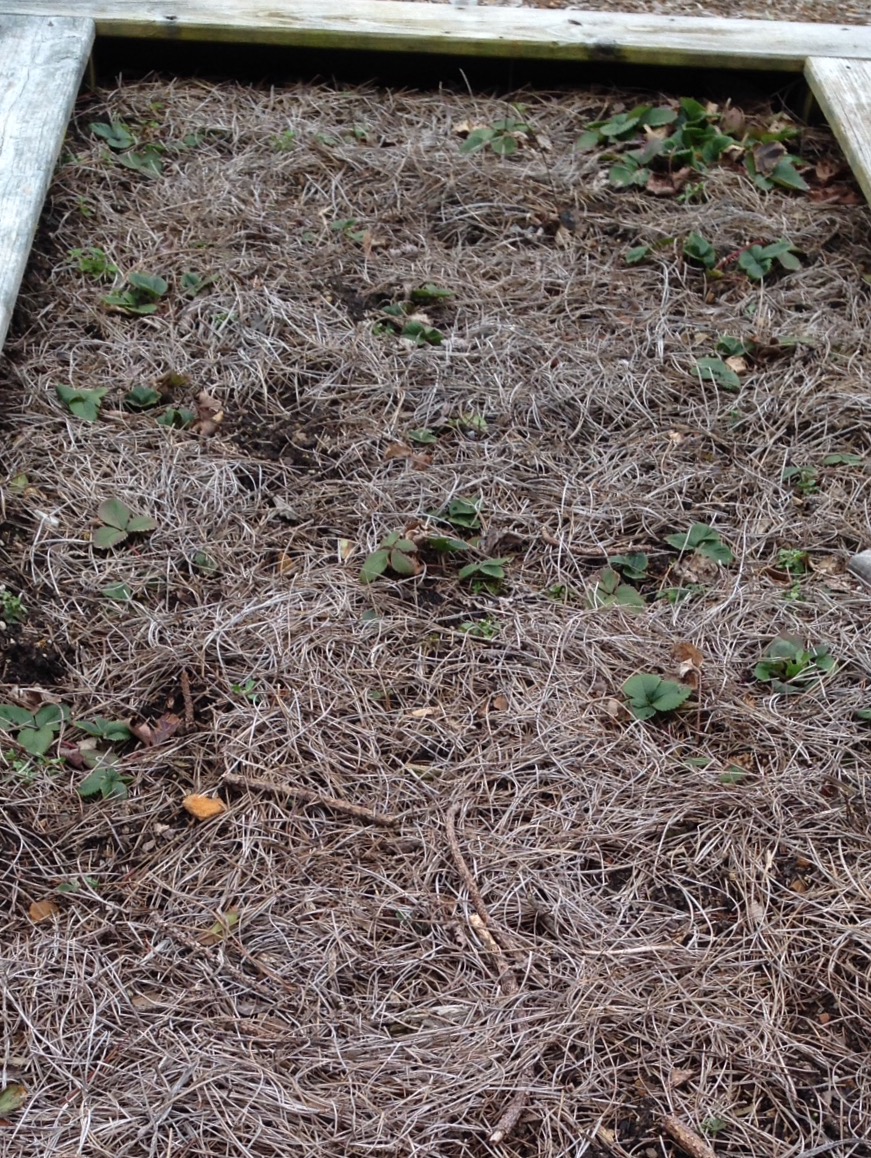 We started a new strawberry bed last fall using plants from the older bed which we turned and let sit over the winter. These are the offspring of 6 plants we started with iin 2009.