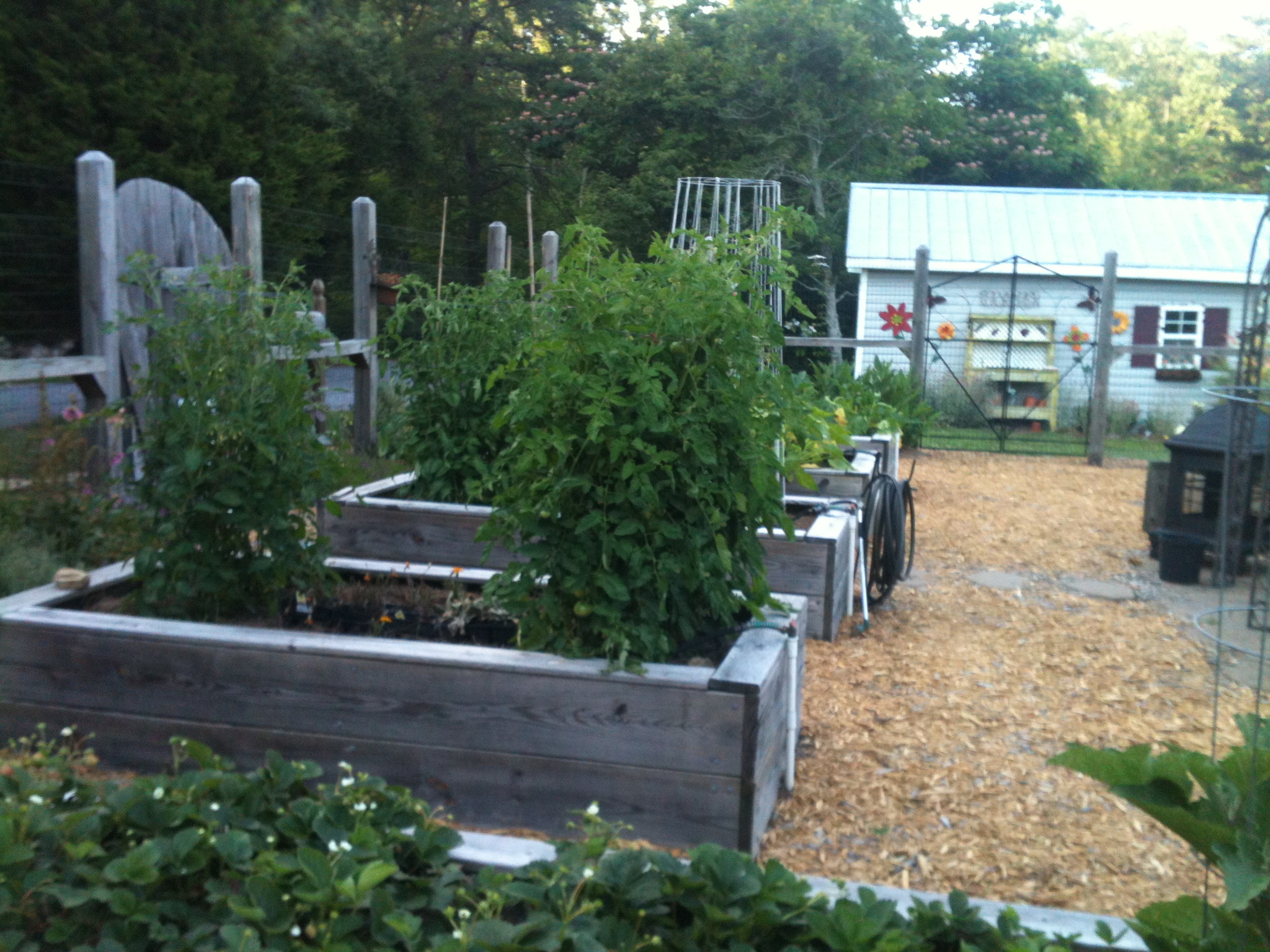 Garden Looks great! I have gathered a few cherry tomatoes off my bucket plants on the front porch and one yellow tomato. I have others growing but nothing like yours. Proud of you two. Don’t overdo. Have a great time and don’t get too hot. It’s been better here the last few days. The rain helped cool things off.
